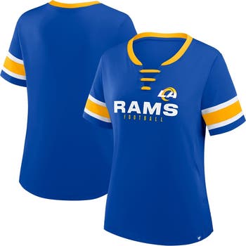 Cheer on the Los Angeles Rams in trendy apparel with this Redzone Draw Play Athena Lace-Up T-Shirt by Fanatics. Stretch jersey fabric provides a lightweight feel, while the classic fit creates a flattering silhouette. Rubberized team details and a faux lace-up neckline add stylish touches to this comfortable Los Angeles Rams tee.
