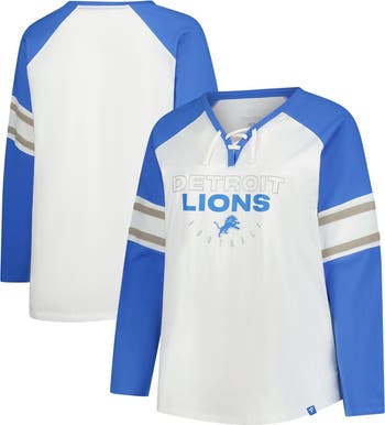 Show off your team pride in style with this Detroit Lions Plus Size Redzone Lace Up Long Sleeve T-Shirt from Fanatics. The raglan sleeves offer greater freedom of movement in the shoulders and arms, ensuring maximum comfort as you cheer on the Detroit Lions. The classic fit is designed to flatter your silhouette, making this tee a stylish and spirited addition to your game day wardrobe.