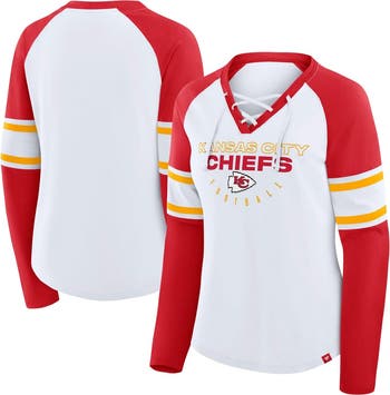 Show off your team pride in style with this Kansas City Chiefs Plus Size Redzone Lace Up Long Sleeve T-Shirt from Fanatics. The raglan sleeves offer greater freedom of movement in the shoulders and arms, ensuring maximum comfort as you cheer on the Kansas City Chiefs. The classic fit is designed to flatter your silhouette, making this tee a stylish and spirited addition to your game day wardrobe.