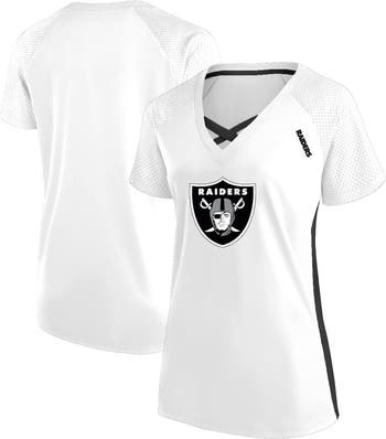 Bring some sparkle to your Las Vegas Raiders game day look with this Fanatics Glitter Lace-Up V- Neck T-Shirt. The perforated sleeves provide added breathability, ensuring you stay cool and comfortable whether you re cheering from the stands or watching the game from home. Plus, the screen print team logo at the center chest, adorned with eye-catching glitter details, lets everyone know you re a true Las Vegas Raiders fashionista.