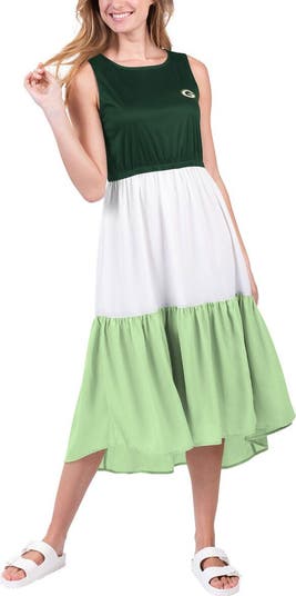 Combine your eye for fashion and Green Bay Packers fandom with this 12th Inning dress from G-III 4Her by Carl Banks. It features a unique colorblock design and the Green Bay Packers logo on the left side of the chest to showcase your unwavering spirit. The elastic waistband adds shape while the flowy construction gives it a more relaxed and comfortable look.
