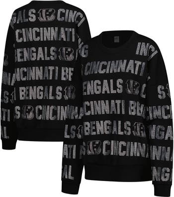 Women s Gameday Couture Black Cincinnati Bengals Oversized Hype Era Rhinestone Text Sweatshirt