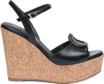Women s black leather wedge
