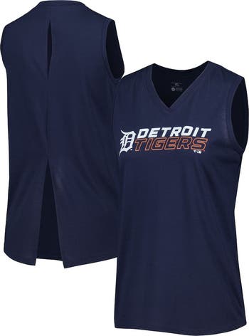 The Women s Levelwear Navy Detroit Tigers Paisley Chase V-Neck Tank Top is the perfect way to show your support for the Detroit Tigers. Made from a comfortable polyester and cotton blend, this tank top features a flattering V-neck, sleeveless design, and screen-printed graphics that proudly display your Detroit Tigers pride. The slit at the back and keyhole at the back of the neck add a touch of style, while the official Detroit Tigers logo ensures everyone knows where your allegiance lies. Whether you re cheering on the Tigers at the ballpark or just showing your support around town, this tank top is a must-have for any Detroit Tigers fan.