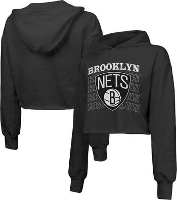Women s Majestic Threads Black Brooklyn Nets Repeat Cropped Tri-Blend Pullover Hoodie