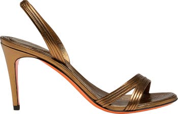 Sophisticated and radiant, this sandal is strictly reserved for special occasions. Crafted from thin metallic nappa leather cords, its luxuriously tactile design embodies Santoni s elevated savoir-faire. Styled with a leg-lengthening stiletto heel and straps that embrace the toe and heel to support every stride with charisma and confidence.