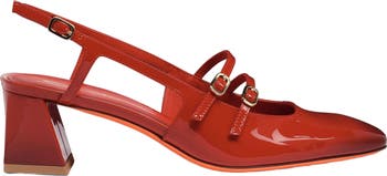 This Santoni slingback reinterprets the classic dolly shoe through a modern lens. Crafted from shiny patent leather, it boasts an elegant yet bold silhouette with a square toe and sinuously sculpted mid-height heel. Adjustable straps at the front and back ensure a flawless fit.