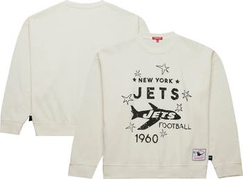 Women s Mitchell Ness Cream New York Jets Throwback Logo 3.0 Pullover Sweatshirt