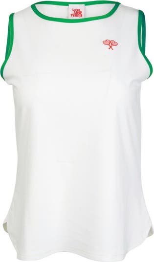 The Nettie Top is a lightweight, UV-protective Lycra spandex sleeveless athletic tank designed for comfort and performance. Featuring aqua or green fabric detail at the neckline and arms, this top offers a sleek and sporty look. Finished with our signature embroidered crossed heart logo. Available in aqua and green.