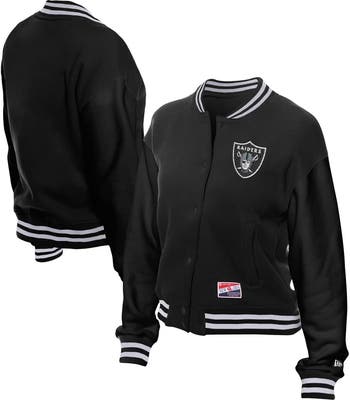 Show your timeless team pride in this Las Vegas Raiders Throwback Fleece Full-Snap Jacket from New Era. This midweight jacket is suitable for moderate temperatures, perfect for layering up on game day. The embroidered chenille applique team logo on the left chest showcases your Las Vegas Raiders pride in vintage style.