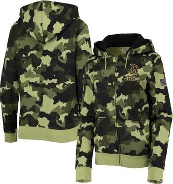 Give a huge thank you to our military members while representing the Boston Red Sox with this 2022 MLB Armed Forces Day full-zip hoodie from New Era. The classic team graphics on top of the spirited camo design blend perfectly together to show your die-hard fandom. Fleece lining in this midweight top is great for keeping you warm as you flaunt your support for our troops and the Boston Red Sox.