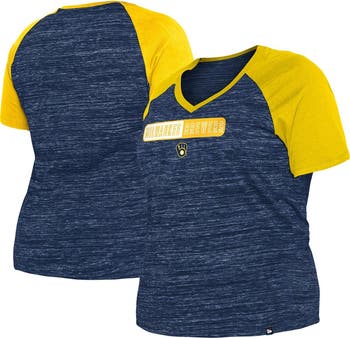 Celebrate your unwavering Milwaukee Brewers fandom with the New Era Navy Milwaukee Brewers Plus Size Space Dye Raglan V-Neck T-Shirt. This stylish tee features raglan sleeves for a comfortable fit and screen-printed graphics that proudly display your Brewers pride. The unique space-dye fabric adds a touch of flair to this must-have tee. Whether you re cheering from the stands or simply showing your support, this t-shirt is the perfect way to represent the Milwaukee Brewers in style.