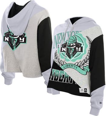 Show off your love for the game with this New York Liberty Upcycled Color Block Cropped Boxy Hoodie from New Era. The midweight fleece lining ensures cozy comfort, making it perfect for those cooler game nights. The unique split color-blocked fabric with different graphics on each panel creates a one-of-a-kind look that s sure to turn heads.