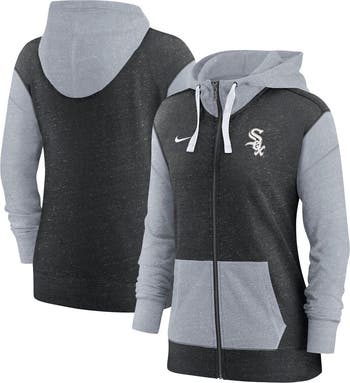 The Women s Nike Black Chicago White Sox Full-Zip Hoodie is the perfect way to show your support for the Chicago White Sox. Made from a comfortable cotton and polyester blend, this lightweight hoodie is perfect for mild temperatures. Screen print graphics and slub fabric give it a stylish look, while two front pockets provide ample storage space. Whether you re cheering on the White Sox at the stadium or relaxing at home, this hoodie will keep you comfortable and stylish. The Chicago White Sox are one of the most storied franchises in Major League Baseball, and their fans are some of the most passionate in the sport. This hoodie is a great way to show your support for the White Sox and celebrate their rich history.