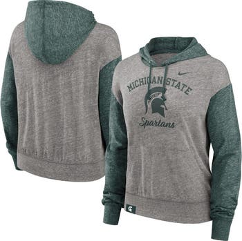 Comfortably show support for your Michigan State Spartans in cooler conditions with this Blitz Legacy pullover hoodie. Its color-block design by Nike accentuates the Michigan State Spartans graphics printed on heathered fabric. Dropped shoulders create a more relaxed fit, and an adjustable hood provides added coverage.