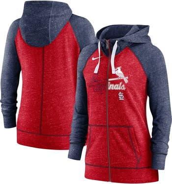 The Women s Nike Heather Red/Heather Navy St. Louis Cardinals Split Wordmark Gym Vintage Raglan Lightweight Full-Zip Hoodie is the perfect way to show your support for the St. Louis Cardinals. Made from a lightweight cotton and polyester blend, this hoodie is ideal for mild temperatures. The raglan sleeves and two front pockets enhance comfort and style. Whether you re cheering on the Cardinals at the stadium or relaxing at home, this hoodie ensures both comfort and style.