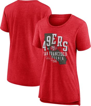 Bring a touch of vintage style to your San Francisco 49ers fandom with this Nike Vintage Graphic Tri-Blend Scoop Neck T-Shirt. Its super-soft tri-blend construction feels great against your skin for all-day comfort. The distressed screen print graphics on the front offer a vintage look that s right on trend.