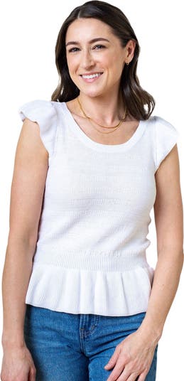 Our flattering peplum sweater top will be a springtime staple. Features a delicate stripe stitch texture in soft organic cotton for a feminine touch. A truly versatile piece that pairs nicely with shorts, skirts, and other layering pieces.