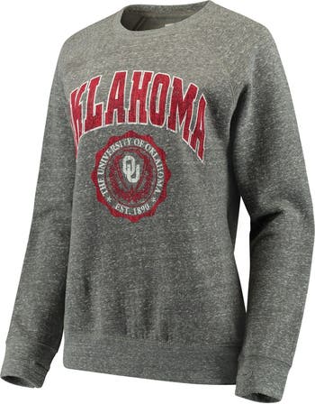 The Women s Pressbox Heathered Gray Oklahoma Sooners Edith Vintage Knobi Pullover Sweatshirt is the perfect way to show your support for the Oklahoma Sooners. This midweight pullover is made from a soft and comfortable polyester and cotton blend, featuring distressed graphics for a vintage look. The fleece lining will keep you warm on chilly game days, and the raglan sleeves and thumbholes in the cuffs provide added comfort. Whether you re cheering on the Sooners from the stands or relaxing at home, this sweatshirt is sure to become a favorite.