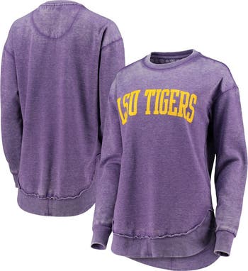 The Women s Pressbox Purple LSU Tigers Vintage Wash Pullover Sweatshirt is the perfect way to show unwavering support for the LSU Tigers. Made from a comfortable blend of polyester and cotton, this midweight sweatshirt features a fleece lining for added warmth during chilly game days. The rounded droptail hem with unfinished seams adds a stylish touch, while the washed fabric gives it a vintage look. Whether cheering from the stands or simply showing support, this sweatshirt is the perfect way to represent the LSU Tigers in style.