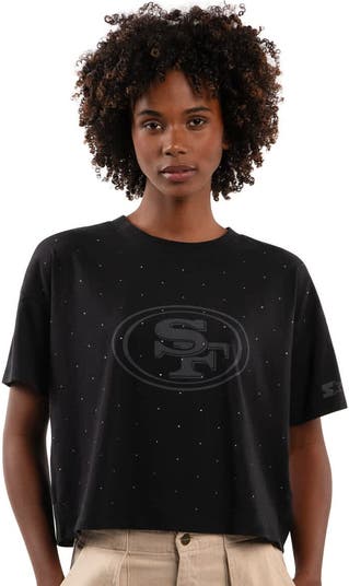 Time to give your game-day look a serious style upgrade with this fabulous San Francisco 49ers Cropped T-Shirt from Starter. This tee features a trendy relaxed, boxy fit with dropped shoulders and a flattering cropped length that hits right at the waist, giving you a modern and comfortable silhouette. But here s the fun part: the screen-printed team logo is decked out with mini rhinestone details, adding the perfect touch of sparkle to your San Francisco 49ers pride. It s the ultimate way to show off your fandom with fashionable flair.