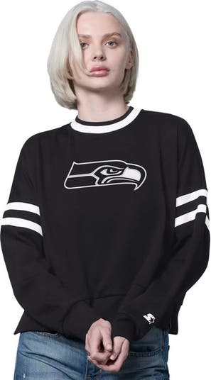 Rep your team in style with this Seattle Seahawks Rally Drop Shoulder Cropped Sweatshirt from Starter. The fleece lining provides added warmth and a soft feel, making it perfect for cooler game days or cozy nights in. The embroidered fabric applique team logo boldly displays your Seattle Seahawks pride.