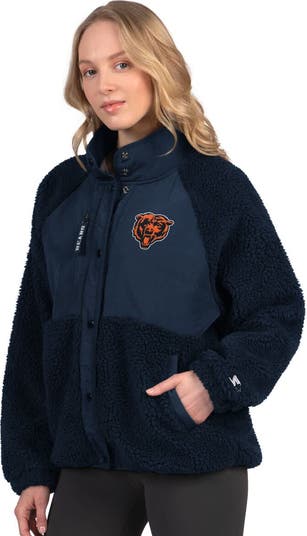 Bundle up in true Chicago Bears fashion with this On the Ball Sherpa Jacket from Starter. The sherpa fabric provides a luxurious feel, while the rounded droptail hem and raglan sleeves offer both coverage and easy mobility. Show off your Chicago Bears pride with the team logo embroidered fabric applique at the left chest and enjoy the convenience of multiple pockets for all your essentials.