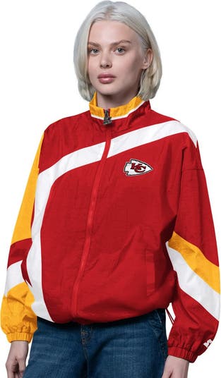 Show off your timeless Kansas City Chiefs style with this Vintage 1st Quarter Full-Zip Windbreaker from Starter. This vintage-inspired windbreaker is the perfect way to show off your Kansas City Chiefs pride while staying comfortable in mild weather. The oversized fit and mesh lining provide a relaxed and breathable feel, while the retro team color stripe design and logo applique add a touch of classic style.