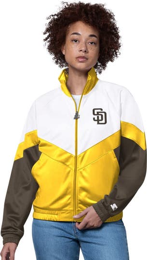 Show your San Diego Padres spirit with this Teamwork Raglan Full-Zip Track Jacket from Starter. This lightweight jacket is perfect for mild temperatures, ensuring you stay comfortable while showing off your team pride. The embroidered fabric applique team logo at the left chest and wordmark on the back will showcase your dedication to the San Diego Padres.
