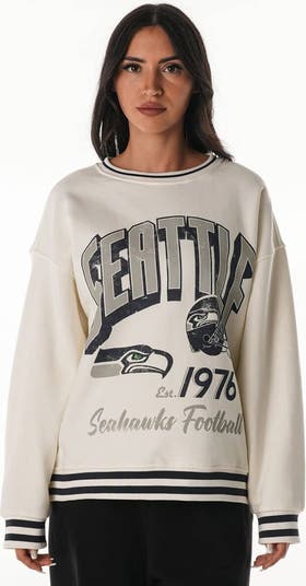 Women s The Wild Collective Cream Seattle Seahawks Oversized Vintage French Terry Sweatshirt
