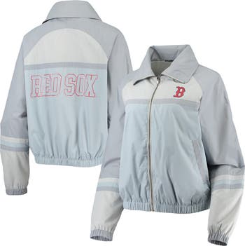 Women-owned brand The Wild Collective brings you a piece of fashionable team gear with this Boston Red Sox Colorblock Track jacket. It features raglan sleeves, a stand-up collar and elastic cuffs and hem for an aesthetic look. The heat-sealed Boston Red Sox graphics and bold colorblock design are the finishing touches for this trendy jacket.