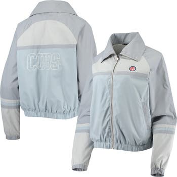 Women-owned brand The Wild Collective brings you a piece of fashionable team gear with this Chicago Cubs Colorblock Track jacket. It features raglan sleeves, a stand-up collar and elastic cuffs and hem for an aesthetic look. The heat-sealed Chicago Cubs graphics and bold colorblock design are the finishing touches for this trendy jacket.