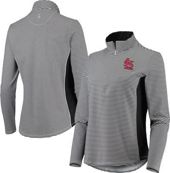 Women s Tommy Bahama Black St. Louis Cardinals Aubrey Stripe Block IslandZone Half-Zip Jacket