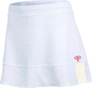 The Tracy Skirt is made from lightweight, UV-protective pique spandex, offering comfort and performance. Featuring vintage polka dot trim along the sides and a flattering side slit hem at each side, this athletic skort combines style and functionality. Available in our signature yellow, it is finished with our signature embroidered crossed heart logo on the left.