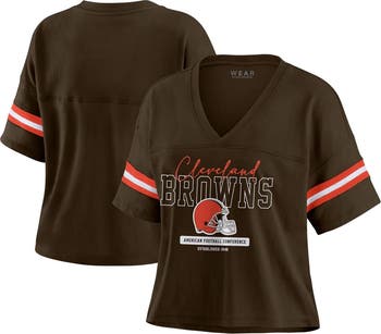 Add a pop of color to your Color Block Boxy V-Neck T-Shirt game day look with the WEAR by Erin Andrews. This ultra-soft, jersey cotton tee features a relaxed, boxy fit that s ideal for cheering on the Cleveland Browns in total comfort. Bold color blocking, sleeve stripes and a printed team name and logo offer a spirited look for game day.