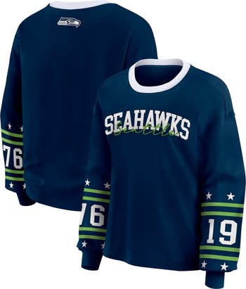 Show off your die-hard Seattle Seahawks loyalty with this Sport Long-Sleeve T-Shirt from WEAR by Erin Andrews. Featuring a relaxed fit with dropped shoulder seams, this long-sleeve T-shirt offers a comfortable and effortlessly stylish look that s perfect for game day or everyday wear. The embroidered city name under the screen-printed team wordmark proudly showcases your Seattle Seahawks pride.