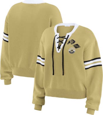 Women s WEAR by Erin Andrews Gold Colorado Buffaloes Lace-Up Pullover Sweater