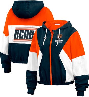 Celebrate your Chicago Bears fandom in style with this WEAR by Erin Andrews Color Block Full-Zip Windbreaker Jacket. This lightweight jacket is perfect for mild temperatures and features striking Chicago Bears graphics. The mesh lining, elastic banded sleeve cuffs and waist at hem provide a comfortable fit. Whether you re at the stadium or watching from home, this Chicago Bears jacket will keep you comfortable and stylish all game long.