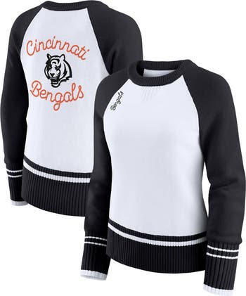 Women s WEAR by Erin Andrews White/Black Cincinnati Bengals Colorblock Raglan Sweater