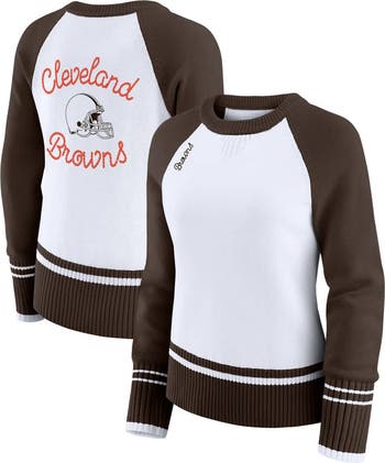 Women s WEAR by Erin Andrews White/Brown Cleveland Browns Colorblock Raglan Sweater