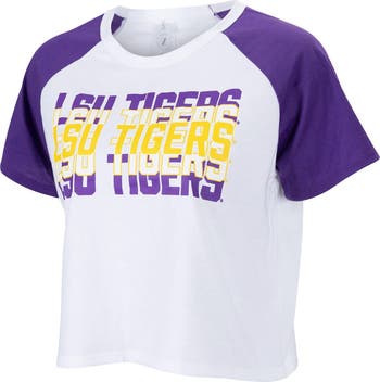 The Women s ZooZatz White LSU Tigers Colorblock Repeat Raglan Cropped T-shirt is the perfect way to show your support for the LSU Tigers. With its screen-printed graphics and cropped design, this t-shirt is both stylish and comfortable. Made from cotton, this t-shirt is perfect for game day or any day you want to show your LSU Tigers pride.