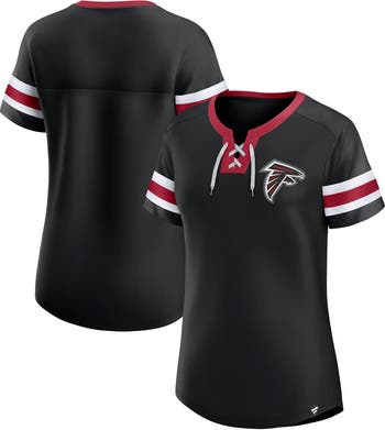 Add a touch of sparkle to your Atlanta Falcons game day look with this Fanatics Lace-Up Bling T-Shirt. This stylish tee features eye-catching lace-up detailing at the neckline and a touch of shimmer with bling accents. The soft, lightweight fabric and relaxed fit make it a comfortable choice for everyday wear or game day.