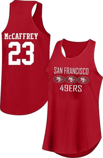 Cheer on the San Francisco 49ers with this Christian McCaffrey Plus Size Name Number Tank Top from Fanatics, perfect for any devoted fan. This racerback tank features screen-printed team graphics on the front, ensuring your San Francisco 49ers pride is on full display. With Christian McCaffrey s name and number boldly displayed on the back, everyone will know your favorite player on the team. This 100% cotton tank top is exceptionally soft and breathable for those warm game days.