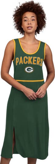 Change up your usual outfit on Green Bay Packers game day with this Center Field Maxi Dress. Its stylish design from G-III 4Her by Carl Banks features contrast-color trim and stripes that accentuate the Green Bay Packers graphics printed across the front. A tie closure at the back of the neck lets you adjust the fit for the most comfortable wearing.