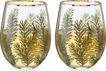 Bring the beautiful flora of winter to your table with this set of woodland wine glasses. Adorned with evergreen sprigs, these vessels are sure to make a statement all year round.