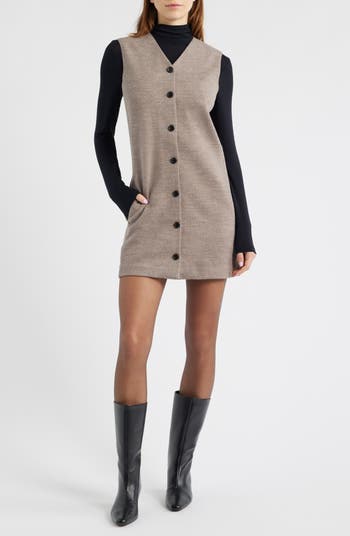 This mini-length shift dress made from a soft merino wool-and-cotton blend features waistcoat-inspired buttons along the front and allows for endless layering options.