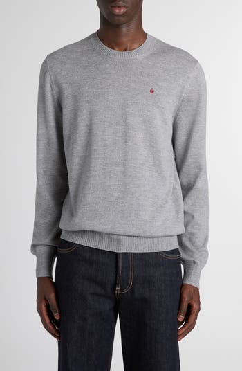 McQueen s macabre edge reigns supreme in this wool sweater embroidered with a topsy-turvy rendition of the maison s signature skull mascot.