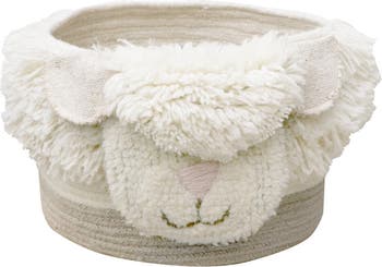 With a pink nose peeping from beneath a mop of flouncy fleece, this basket is the most adorable way to keep your little one s room neat and tidy.