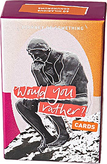 JOURNEY OF SOMETHING: WOULD YOU RATHER CARD GAME - Bring fun, laughter, and outrageous choices to your next gathering with the Would You Rather Card Game! Packed with 60 hilarious and thought-provoking questions, this game challenges players to choose between absurd, silly, and tricky scenarios—like having spaghetti hair or banana fingers or deciding whether it’s better to always be 10 minutes late or 20 minutes early. Whether you’re at a family gathering, party, road trip, or game night, these family-friendly cards will spark hilarious conversations and unexpected debates! HOW TO PLAY: Draw a card and read the "Would You Rather" question. Debate, discuss, and defend your choice. Enjoy the laughs as players justify their decisions! WHY YOU’LL LOVE IT: 60 Unique and Entertaining Questions - A fresh take on a classic game. Perfect Family Game - Fun for kids, teens, and adults alike. Ideal for Parties, Game Nights, groups, road trips, and gatherings. Easy to Play, No Setup Required - Just grab a card and start the fun!