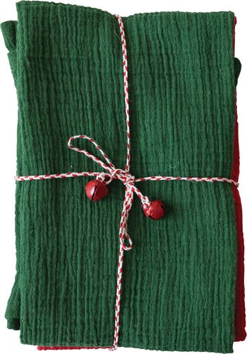 Add some festivity and coziness to the kitchen with these woven cotton double-cloth tea towels with strings and bells. This set of three tea towels is made of cotton that is natural, breathable, . The tea towels feature a woven cotton double cloth fabric in multicolor that has a thick and durable texture and a red and white string and bells bundle that adds some charm and cheer. The tea towels are soft, absorbent, and easy to use. They can be machine washed and dried for convenience. They measure 28 inches by 18 inches and are practical in shape. They can be used for drying dishes, wiping spills, or covering food. Elevate every kitchen routine and dry dishes in style with this absorbent and beautifully designed tea towel.
